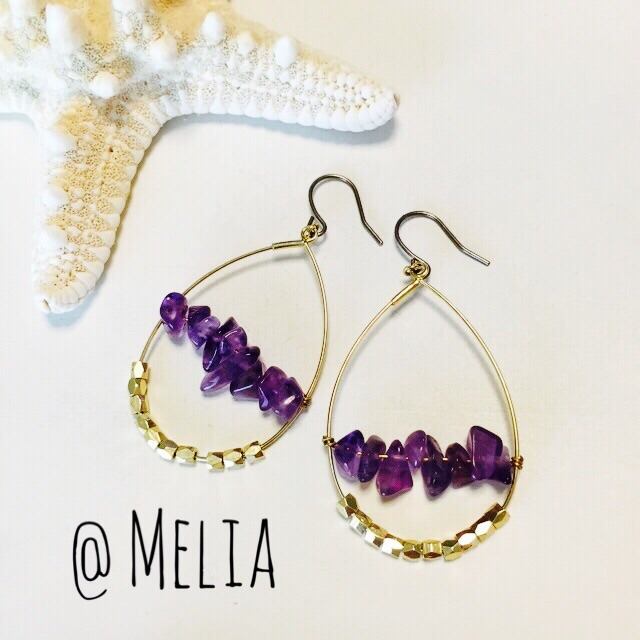 amethyst ▸ G 天然石のアメジストとゴールドの組み合わせがcool✭ long: 5.5cm チタンポスト・イヤリングに変更可能です☆